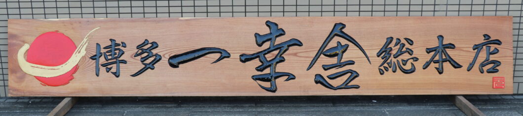 木彫看板 福岡市 ワインで有名なボルドー市 友好姉妹都市への 友情という 木彫看板を製作いたしました。